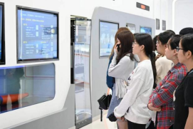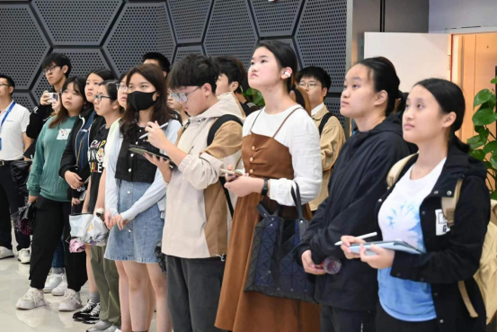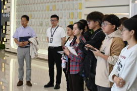 烽火通信是中国信科集团旗下最大的子公司,是中国光通信的发源地,本次活动之行的第一个环节是参观集团展厅,了解中国信科集团经营业务及烽火通信发展历史和取得的主要成就。讲解员向同学们讲述了烽火通信的沿革历史,并详细介绍了近年来的发展状况,其中重点介绍了2018年习总书记考察烽火时的讲话,并带领同学们在展厅近距离接触业务研究成果。