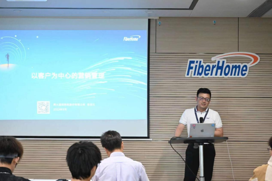 企业展厅参观结束后,同学们移步走进烽火通信企业大学,范总为同学们带来了一场别开生面的课堂学习,详细解构了“以客户为中心的营销管理”。范总从营销架构与设计、营销活动及协同、营销流程体系建设和营销案例分析四个维度展开课程的讲解。学习结束后,田志龙教授结合课堂知识对范志文所授内容做了进一步的剖析与解释,将理论与实践相结合,加深了同学们的理解。