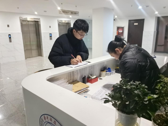 公司迅速启动大楼安全应对预案,开展专项检查工作,排查潜在安全隐患,保障在校师生在楼工作学习安全。公司对楼内实验室、卫生间、工会小家及公共区域的用水用电进行检查,确保水电供应安全平稳;在门前防冻防滑区域铺设防滑垫、撒工业盐防冻、产除门前通道积雪,确保进楼道路安全畅通;对地下车库出入口进行积雪清扫,对路边断落树枝进行及时清理,保障出行安全;会同施工方、物业对大楼外墙瓷砖、施工护栏、报告厅、206会议和五楼东西休闲区(平台)顶部等进行检查。同时,为方便周边居民假期内停车,公司响应公司号召推出便民举措,开放公司地下车库,保障在校人员车辆安全。