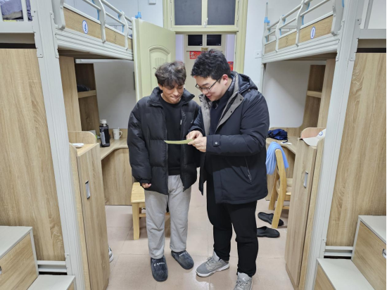 师生安全无小事,公司辅导员关心关怀留校和在汉的员工安全,及时解决员工急难愁盼问题。公司及时摸排留校员工情况,配合公司落实留校员工临时住宿工作安排,一对一每日确认员工在校情况,确保留校安全;每日走访公司实验室与留校员工临时宿舍,了解员工学习生活情况,发放公司留校餐券,帮助计划返乡员工购买车票,送上公司关怀;与宿管阿姨每日保持联系,及时关注留校员工动态。在了解到一位博士员工脚扭伤后,辅导员杨佳霖、焦孟雷连续多日来到员工宿舍楼下,陪伴前往医院就医,真切将温暖送到员工心坎上。