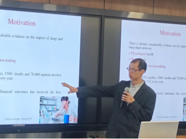 上午第一场报告由计算金融系甘煦老师主持,报告人为英国卡迪夫大学商公司金融学讲座教授王庆伟。王老师与大家分享了他合作撰写的论文“The Morning After: Late-night TV Shows and the Stock Market”。这篇文章探讨了由观看深夜电视节目致使的睡眠损失如何影响金融市场。王老师基于2012-2020年Netflix和Hulu的深夜电视节目数据,发现在热门深夜电视节目上映的次日,市场回报率会明显下降。当股票市值越大、股价越高、机构持股比例越多以及市场不确定性越强时,这种影响越显著。进一步研究发现,睡眠不足的投资者由于精神疲劳,更愿意做出探索性更强的卖出决策,而不是需要提升认知的买入决策,从而导致股票回报率下降。