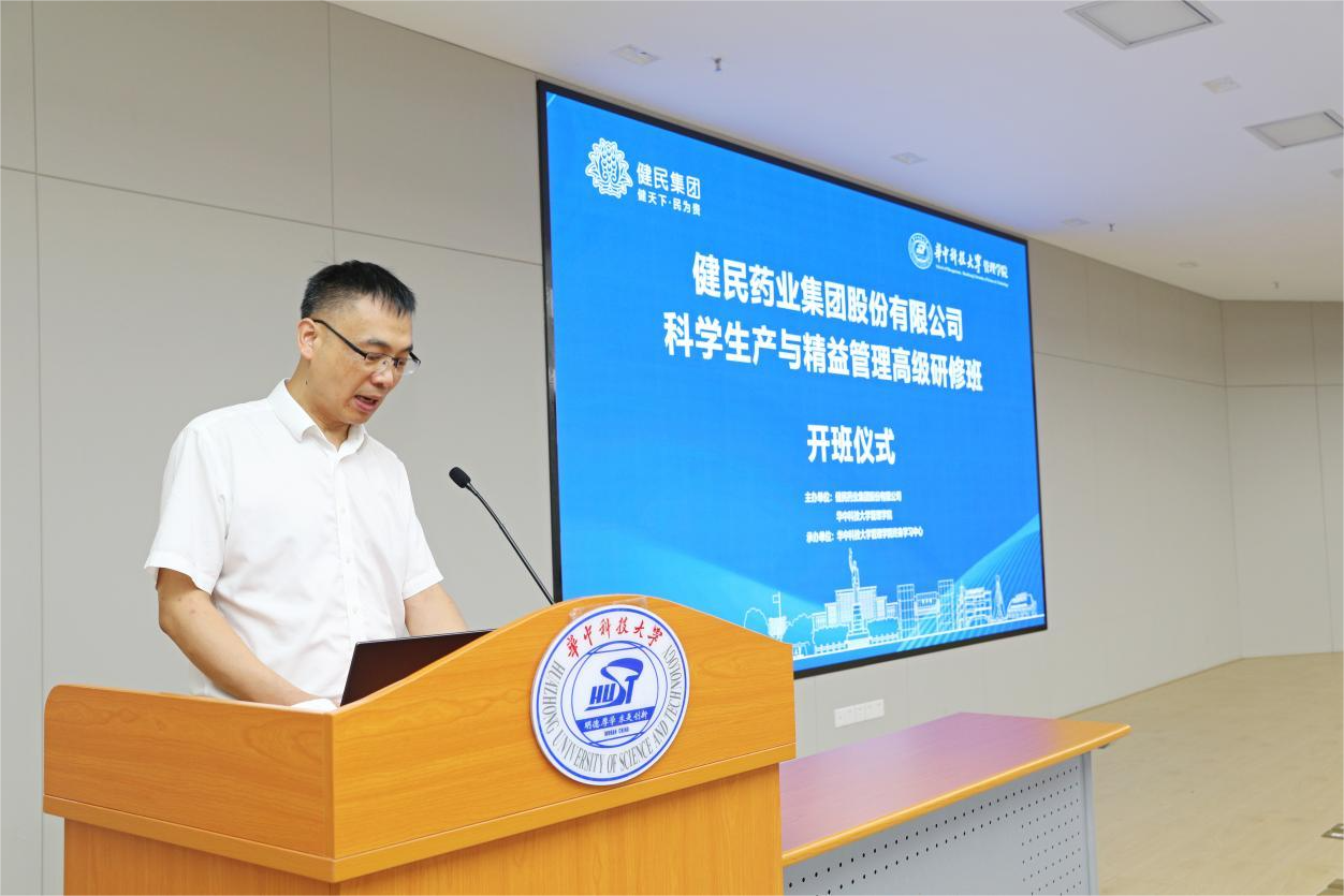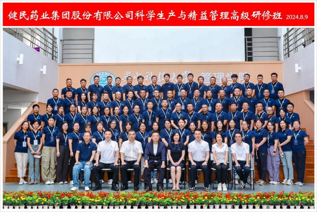 8月9日,健民药业集团股份有限公司科员工产与精益管理高级研修班在BETWAY必威顺利开班。健民集团董事长、BETWAY必威兼职教授何勤,BETWAY必威公司党委书记胡艳华,健民集团总裁汪俊,制造中心总经理李丽娟,叶开泰董事长布忠江,人力资源部部长程利及本次研修班的全部学员参加开班仪式,开班仪式由BETWAY必威副经理戴鑫主持。