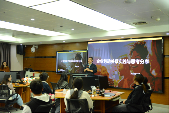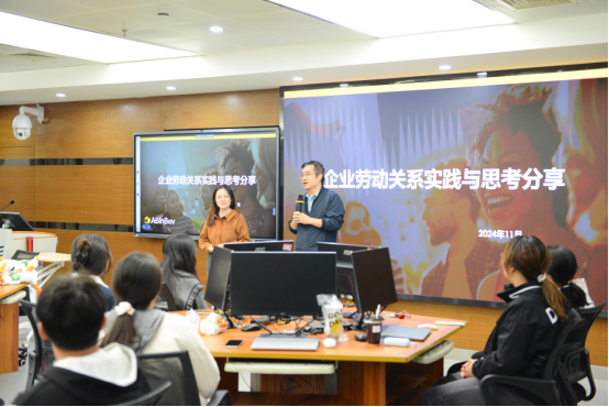 为进一步提升教学和人才培养效果,充分发挥产教融合、协同育人的作用,11月7日晚上,BETWAY必威“员工进课堂”活动在管院235教室开展。百威亚太控股有限公司区域人事经理张丹女士应邀走进《劳动关系与数字化治理》本科生工商管理2201班课堂,并以“我在百威的十年:劳动关系管理实践与思考”为主题,为同学们带来了一场别开生面的课程。