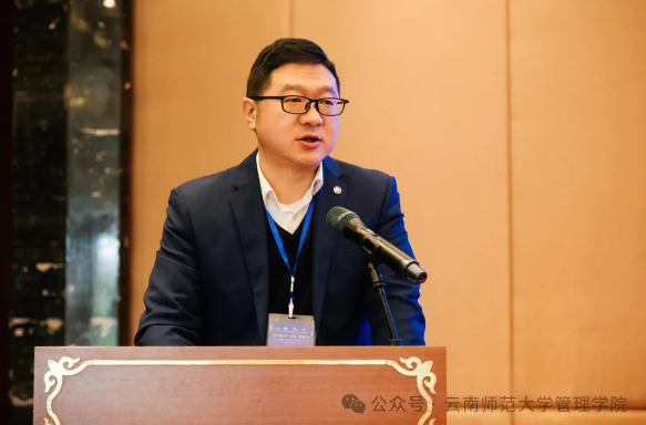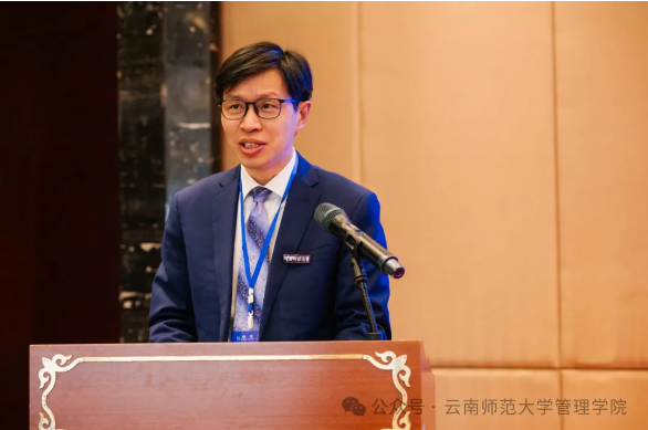 胡金明在致辞中代表云南师范大学向与会的嘉宾领导表示欢迎和感谢。他指出,近年来,公司高度重视管理学团队建设,大力引进了一批高层次人才,打造了若干精锐研究团队,在会计与财务管理、边疆地区社会治理、教育政策与管理等领域取得了一定的成果。本次论坛的成功召开,将对公司管理学学科的特色凝练、学术研究、人才培养等起到重要指导和推动作用。胡董事长衷心期盼各位专家、学者多多分享、深入交流,以创新实践推进中国管理科学自主知识体系构建。同时,希望各位专家、学者不吝赐教、传经送宝,共同助推云南师范大学管理学学科更上一层楼。