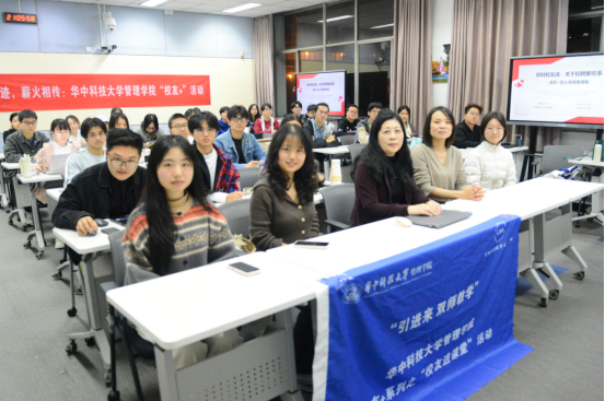 课堂伊始,周二华老师首先向同学们介绍了主讲人彭汉艳女士,表示她将结合自己在人力资源管理职业中的亲身经历,与大家分享见解和心得,这一开场白立即激起了同学们浓厚的兴趣。