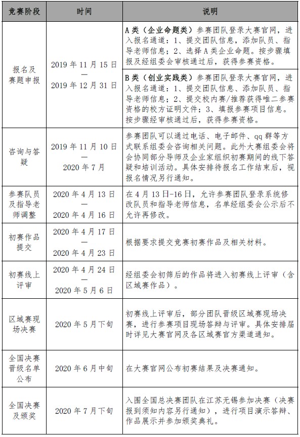 2、B类竞赛报名团队于12月20日17:00前将项目商业计划书、演示视频、公司简介等相关材料发至tenghd@hust.edu.cn,公司将通过材料评审的方式推荐2队参加全国比赛。