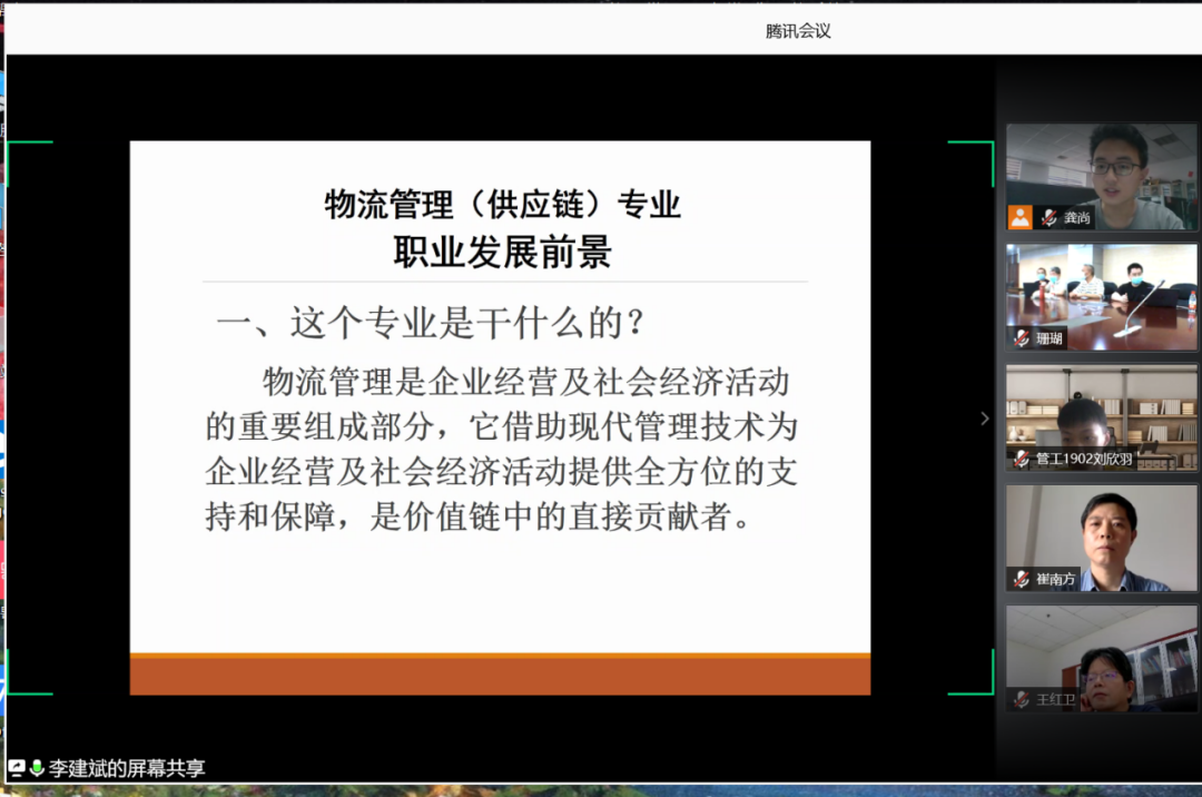 李建斌从专业简介、团队力量及成果、专业人才培养、员工毕业去向和展望未来五个方面,对物流管理专业做了基本介绍。