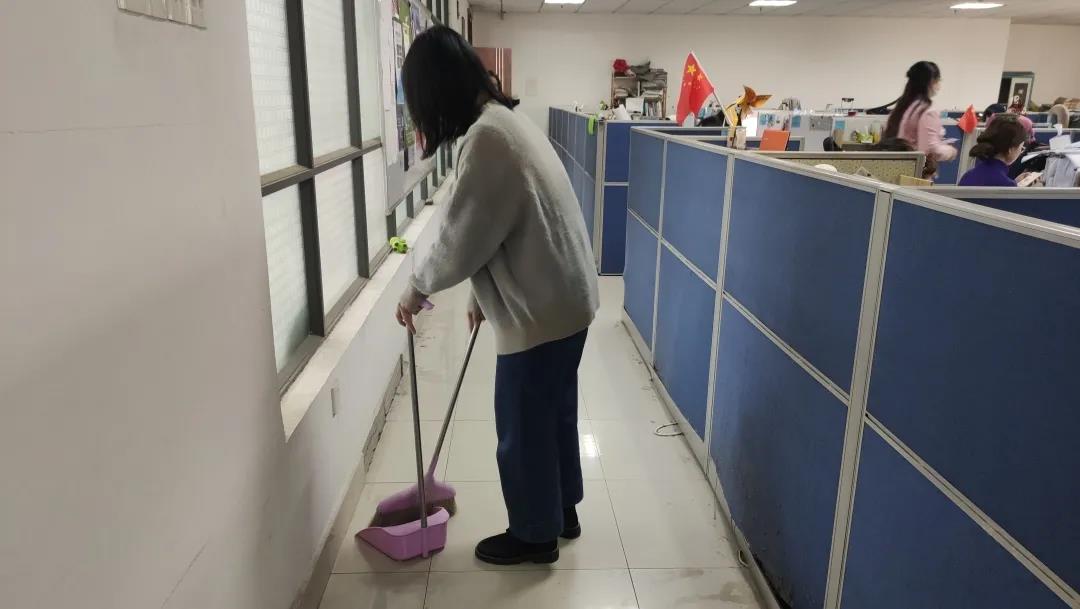 活动中同学们积极认真、热情洋溢,大家分工协作,有人扫地,有人拖地,有人规整物品。大家相互配合,成果斐然,实验室变得干净整洁,给同学们营造了更加宽松舒适的学习环境。