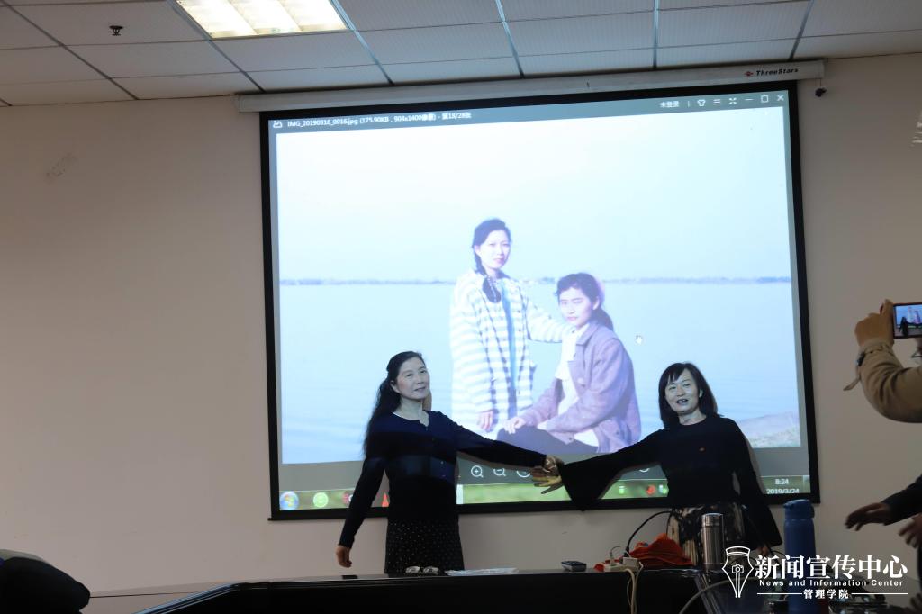 在返校聚会活动上,王陆萱员工放映了89级的毕业照片,引得在场的员工们都一同兴奋地讨论着、回忆着照片背后的故事,还以同样的姿势与照片合影。