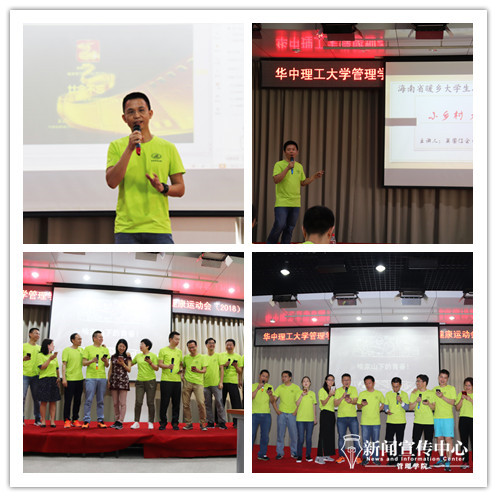 在班会“为你加油”的环节中,员工吴国江追忆了他考取大学的心路历程,从认为“读书无用”到“读书开阔眼界改变人生”,他强调了自己从农村考上华工以及在华工四年的学习生活对他人生的重要作用,并表达了对母校的感激之情。随后他介绍了参与的公益组织“海南暖乡联合会”及其活动“小乡村,大讲坛”和他的团队所取得的优异成绩,赢得了在场员工的热烈掌声。