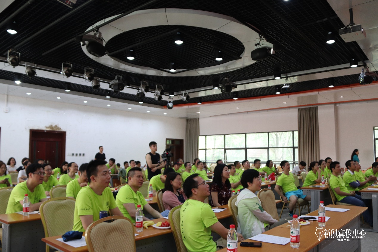 班会尾声的“岁月友情”环节,员工们以班级为单位,积极上台发言,各班班长与在场员工分享了各自的的大学回忆以及毕业20年的所闻所见所感。员工赵瑛表达了她回到母校和同学们相聚的激动心情,也感慨相聚不易,珍惜相聚。接着她代为分享了大学室友的生活近况并代未能到场的同学向大家问好。员工周卫同样回忆了大学四年的珍贵时光,表达了对大学四年岁月的怀念,并就健康的话题分享了自己的想法。随后,员工宣利分享了他毕业后的工作经历和自己关于人生的选择的看法,并分享了一位同学的考研经历勉励大家坚持信念不懈追求。