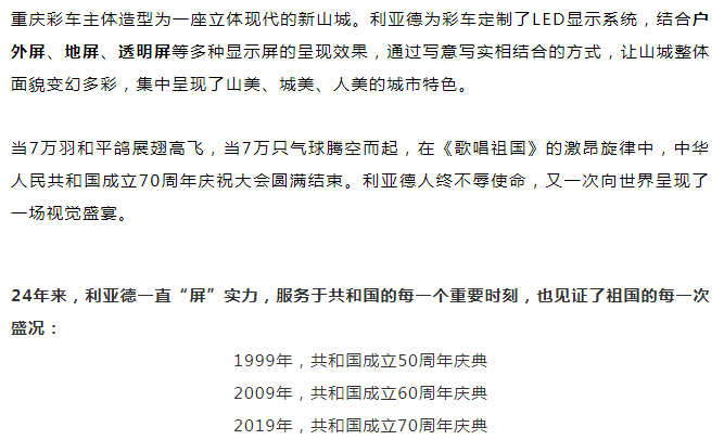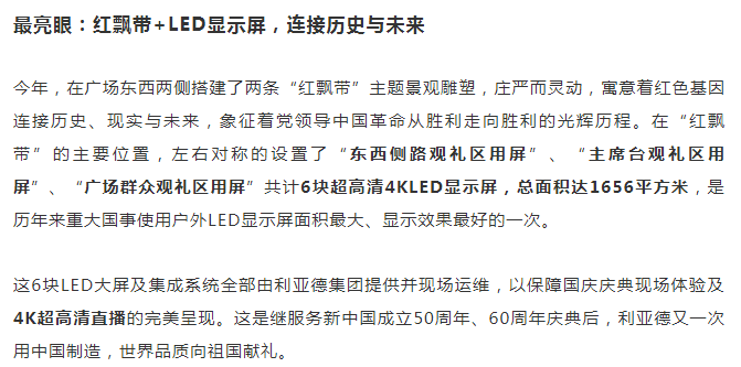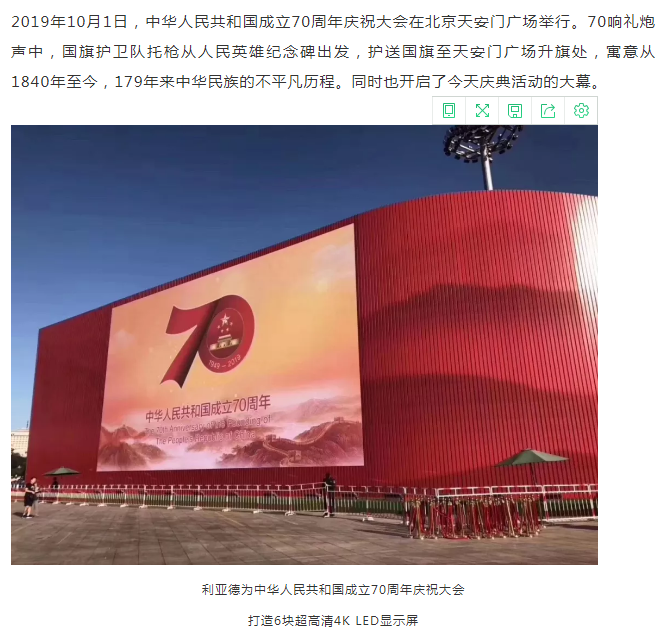 员工李军担任董事长的利亚德集团,“屏”实力向祖国献礼!