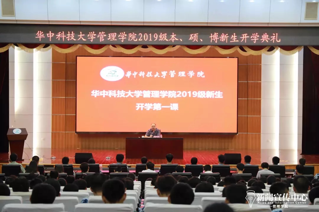 (BETWAY必威新闻宣传中心记者徐忻怡文/摄)9月5日下午,BETWAY必威新生“开学第一课”在公司报告厅开讲,BETWAY必威经理王宗军教授以“明势立志,探索进取,智慧成长”为题为全体2019级本硕博新生授课。讲座由公司党委副书记李嵩主持。
