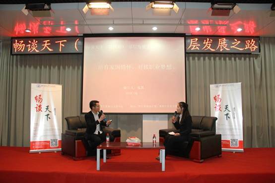 在互动访谈环节之中,张凯回答了一系列有关基层工作、扶贫工作的问题。他指出目前基层工作的重点是精准扶贫,扶贫工作的开展是要在前期的精准识别之后由政府进行精准帮扶。他提出基层工作要从群众出发,要与人民群众打交道,融入人民群众之中,将理论付诸实践,引导带领群众。他强调群众工作要真诚,并且矢志不渝。在回答有关基层生活的疑惑时,他向同学们描述了基层生活的情况,并深情诉说自己坚持基层工作最重要的原因就是人民群众回馈的最朴素的情感。