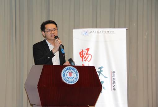 在开始报告前,张凯讲述了自己在员工时代参与公司领袖成长训练营,担任公司兼职辅导员、员工党建办公室副主任以及参与湖北省“青马工程”的培养历程,深情感恩母校母院对自己的谆谆教诲与成长助力。