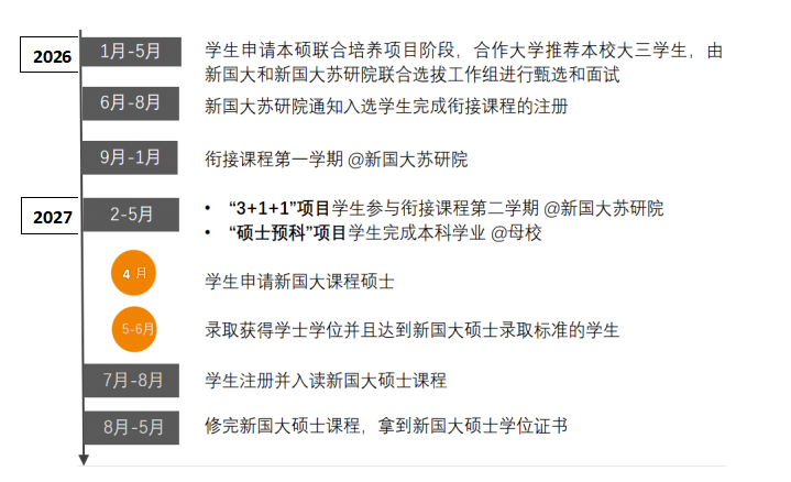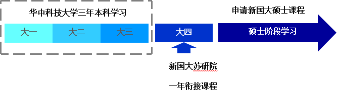 “3+1+1”项目针对华科管院相关专业优秀的本科员工,制定了3年国内大学本科,1年衔接课程和1年硕士课程的学习模式。华科管院员工在完成公司相关专业前三年本科学习后,可申请新国大苏研院一年制衔接课程,衔接课程完成并同时满足华科毕业要求并顺利毕业后,可申请新国大工业系统工程与管理系(ISEM)课程硕士。