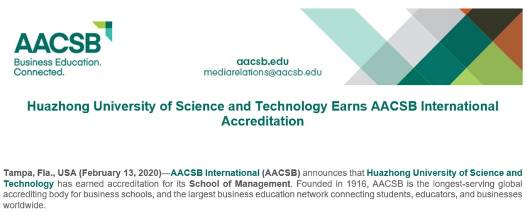 2020年2月13日,国际商公司协会(The Association to Advance Collegiate Schools of Business,简称AACSB)来函通知,经首次认证委员会(Initial Accreditation Committee,简称IAC)和理事会(Board of Directors)决议,BETWAY必威正式通过AACSB国际认证,认证期限为5年。